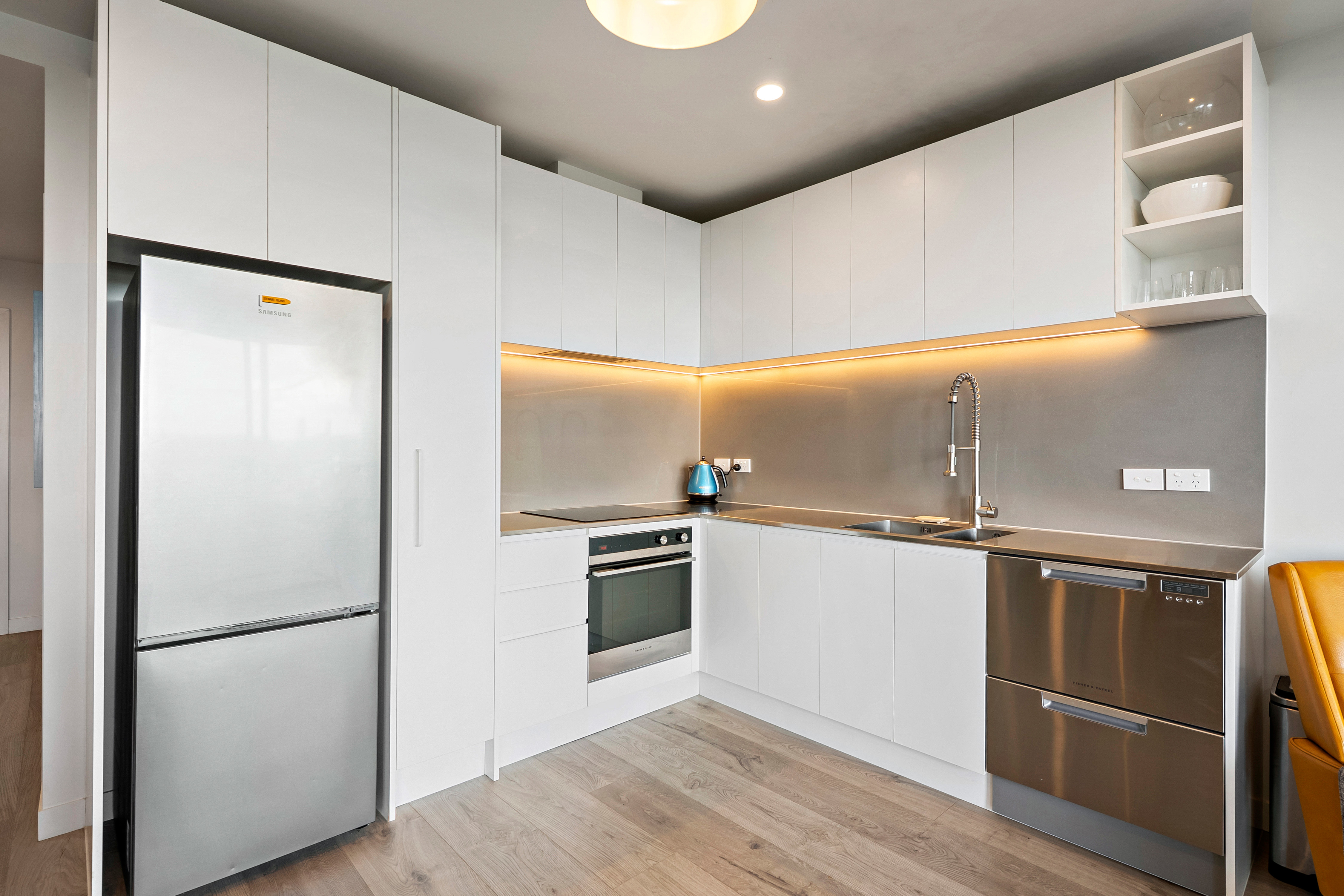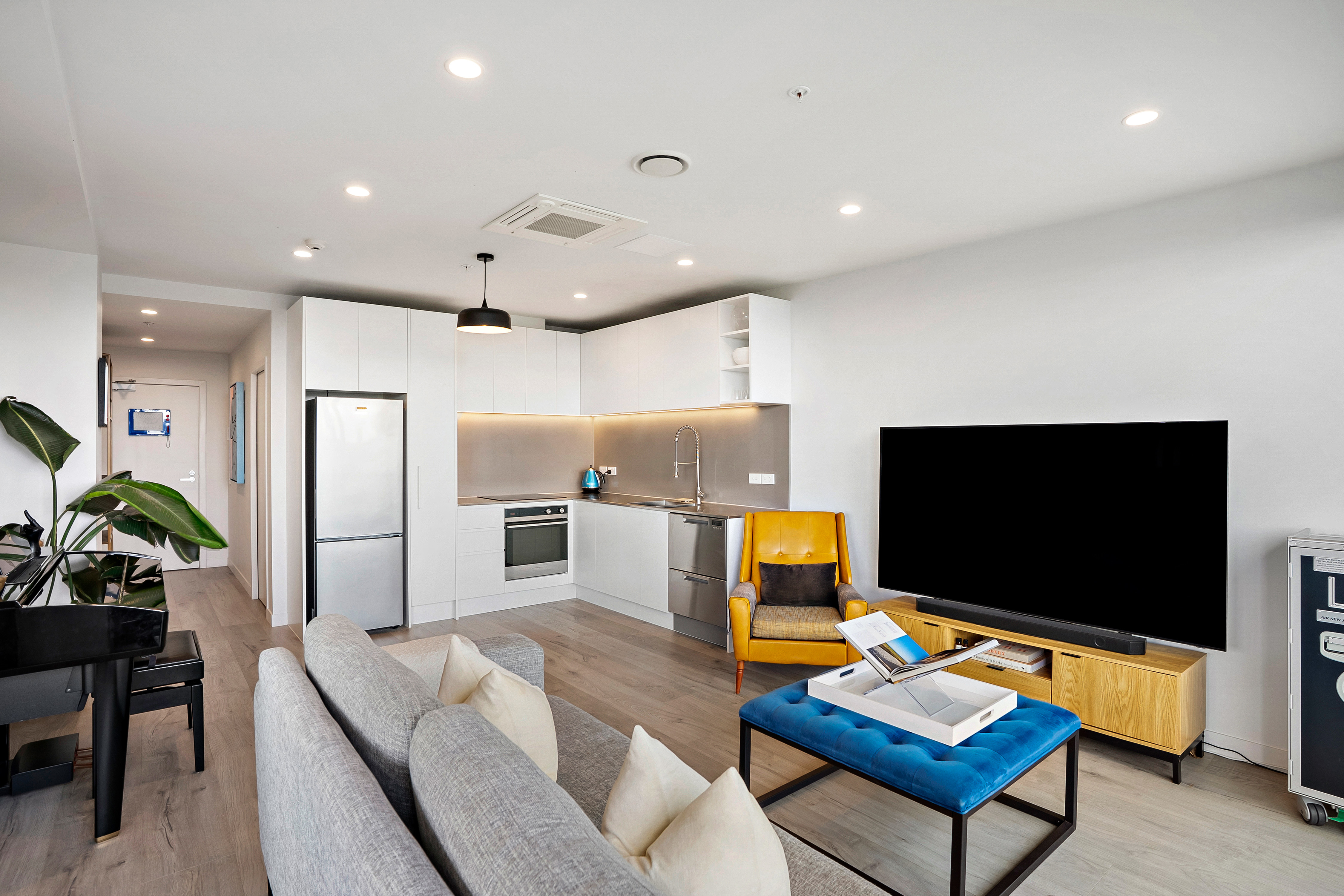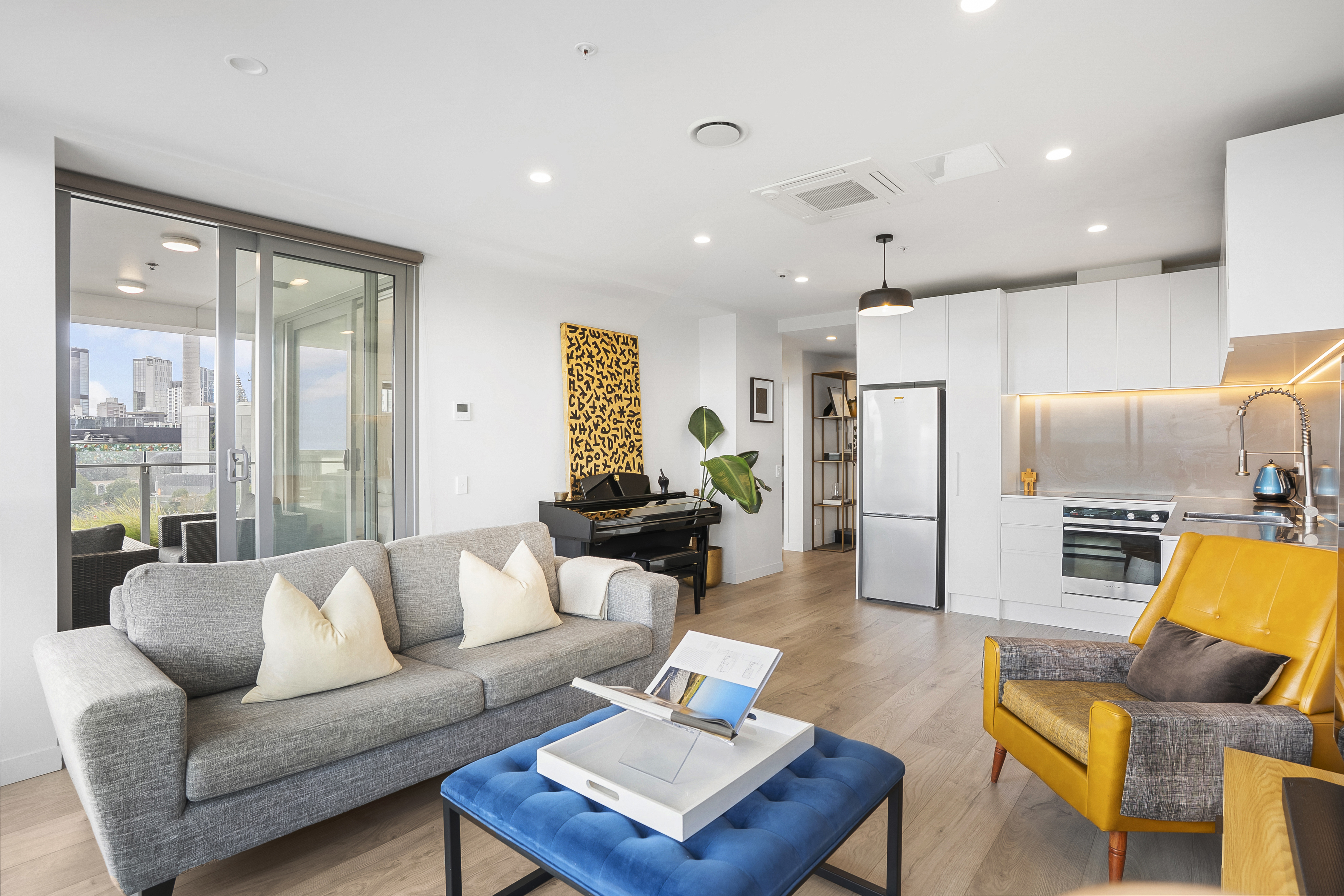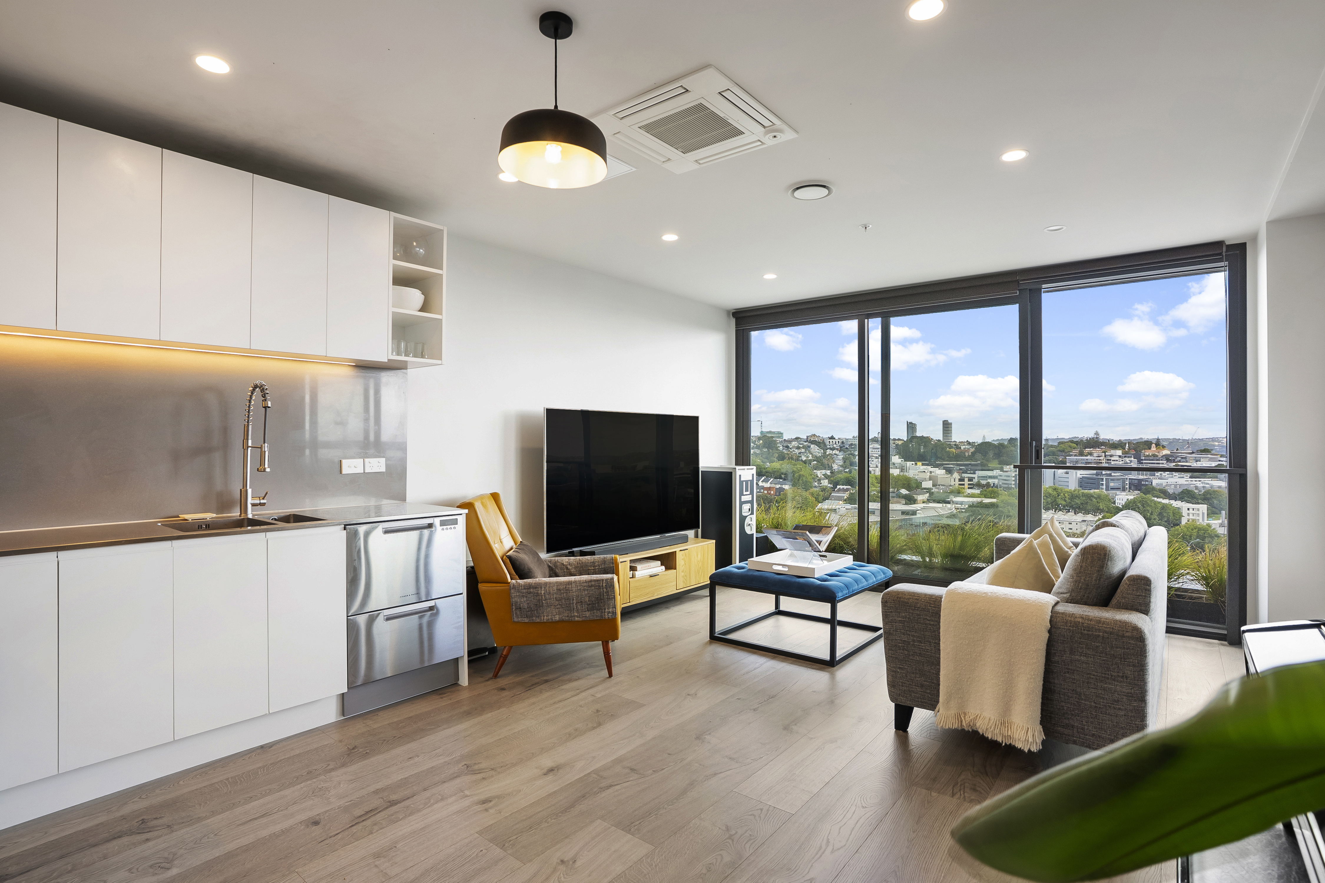 Positioned on the 7th floor in a premium north-facing corner position, this stunning city apartment captures sweeping views across the harbour, Auckland skyline and the iconic Sky Tower. Both the living area and main bedroom centre around a spectacular outdoor terrace, seamlessly connected via large sliding doors - creating effortless indoor-outdoor flow and an incredible vantage point to soak in the views. A generous bonus second room adds excellent flexibility - ideal as a home office, guest space or additional living area. The spacious open-plan kitchen, dining and living area is finished with modern-toned flooring and flows naturally to the terrace for comfortable everyday living or entertaining. A beautifully appointed, fully tiled bathroom adds a touch of luxury and contemporary style, while ducted air conditioning and heating throughout ensures year-round comfort. Whiteware to remain for tenant use - washer, dryer & fridge.