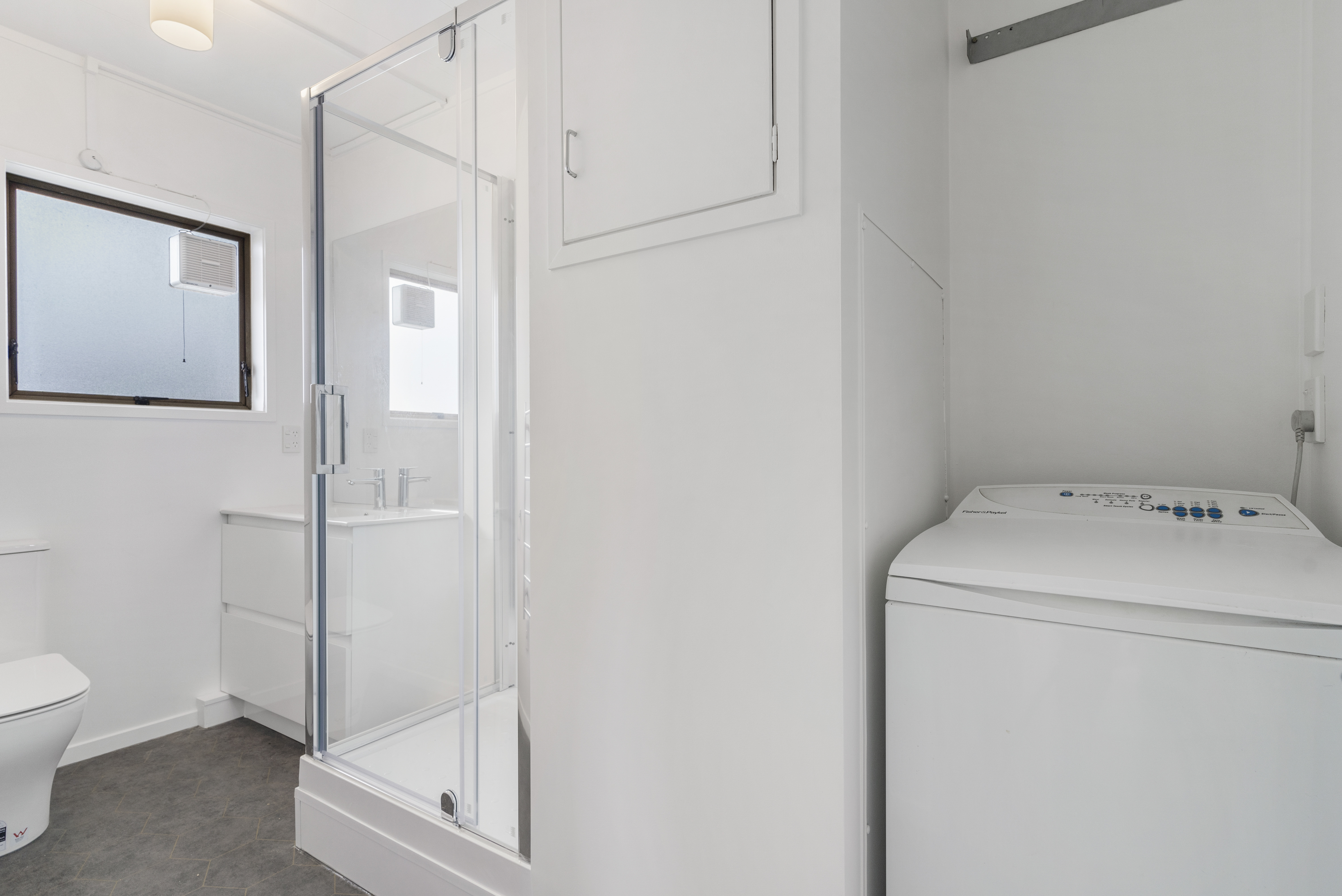 The open-plan living and dining area is warm and welcoming, complete with a heat pump for year-round comfort. Sliding doors open to a sunny north-facing patio - an ideal spot for your morning coffee or unwinding at the end of the day. The generous bedroom features ample wardrobe space, while the modern bathroom has been tastefully renovated and includes a washing machine available for tenant use.