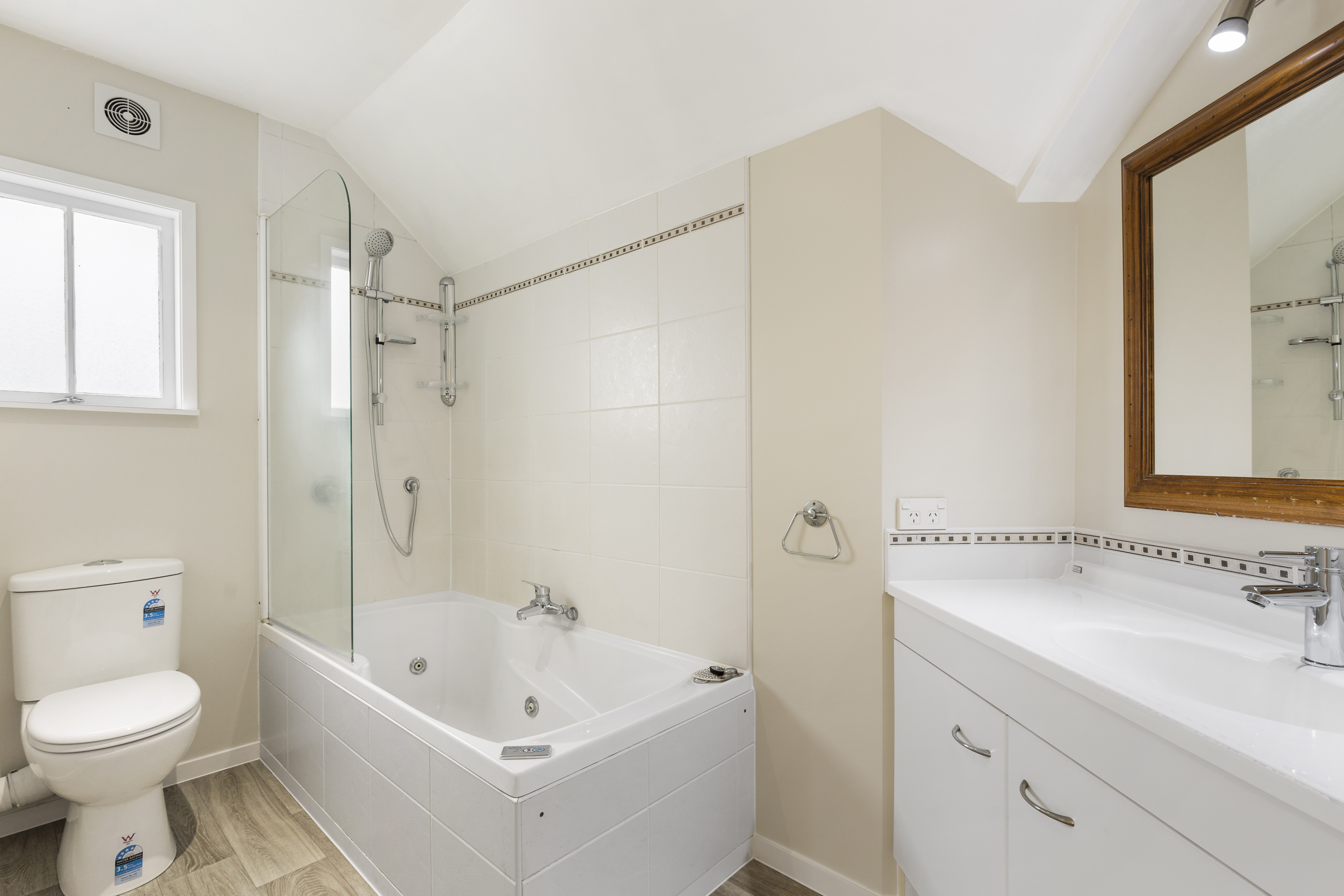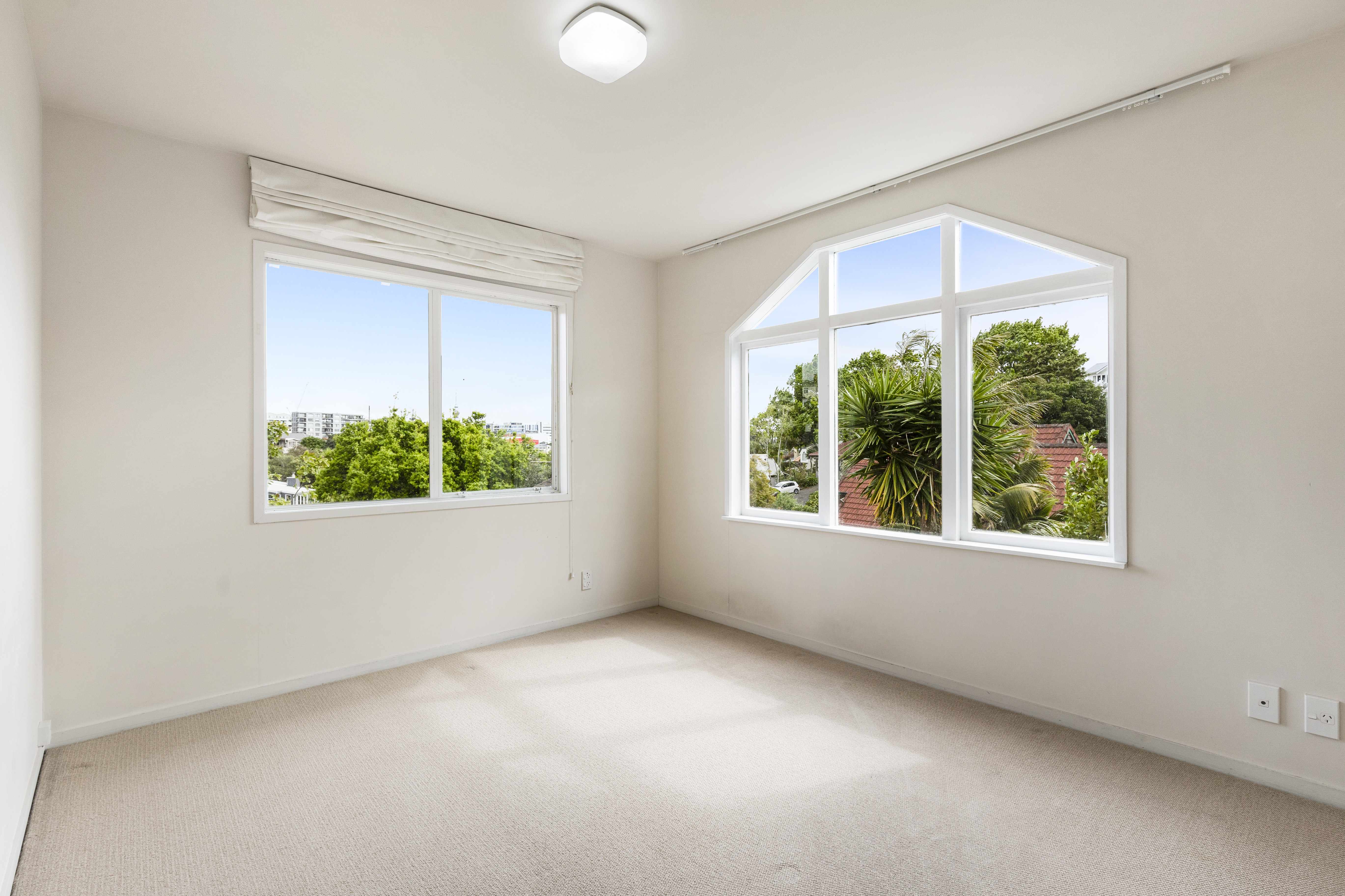 Contemporary inside, the home is filled with light and the hallmark angles of it's era and offers three bedrooms, two living and two and half bathrooms. The modern kitchen is complete with gas cooktop and modern appliances. The adjacent main living is highly spacious with a gas fire place as the visual focal point. This space opens to an expansive wrap around deck area perfect for enjoying Auckland's long summer months. Accommodation is all upstairs, with many of the rooms providing for excellent views of the Auckland skyline & Remuera famed northern slopes.